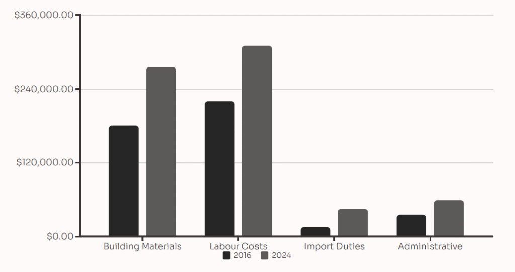 Development costs have risen significantly across all categories, with import duties tripling and labour costs increasing by 40% since the referendum.